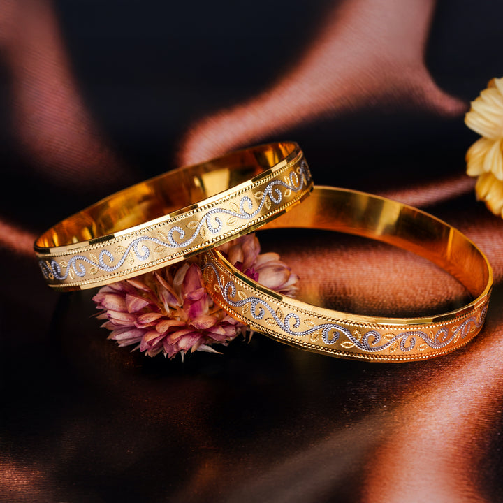 Plated in high-quality gold, these bangles offer a real-gold glow that lasts for years. The smooth finish, anti-tarnish coating, and skin-safe polish make them perfect for weddings, festivals, or gifting.